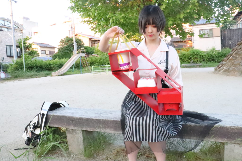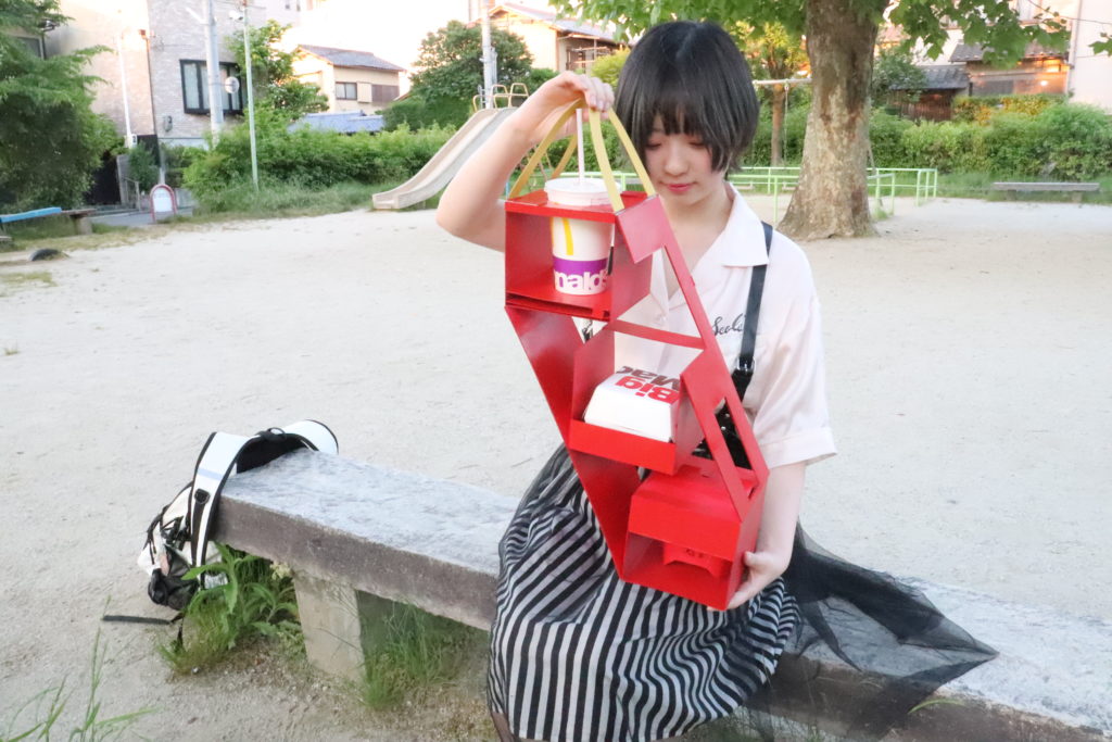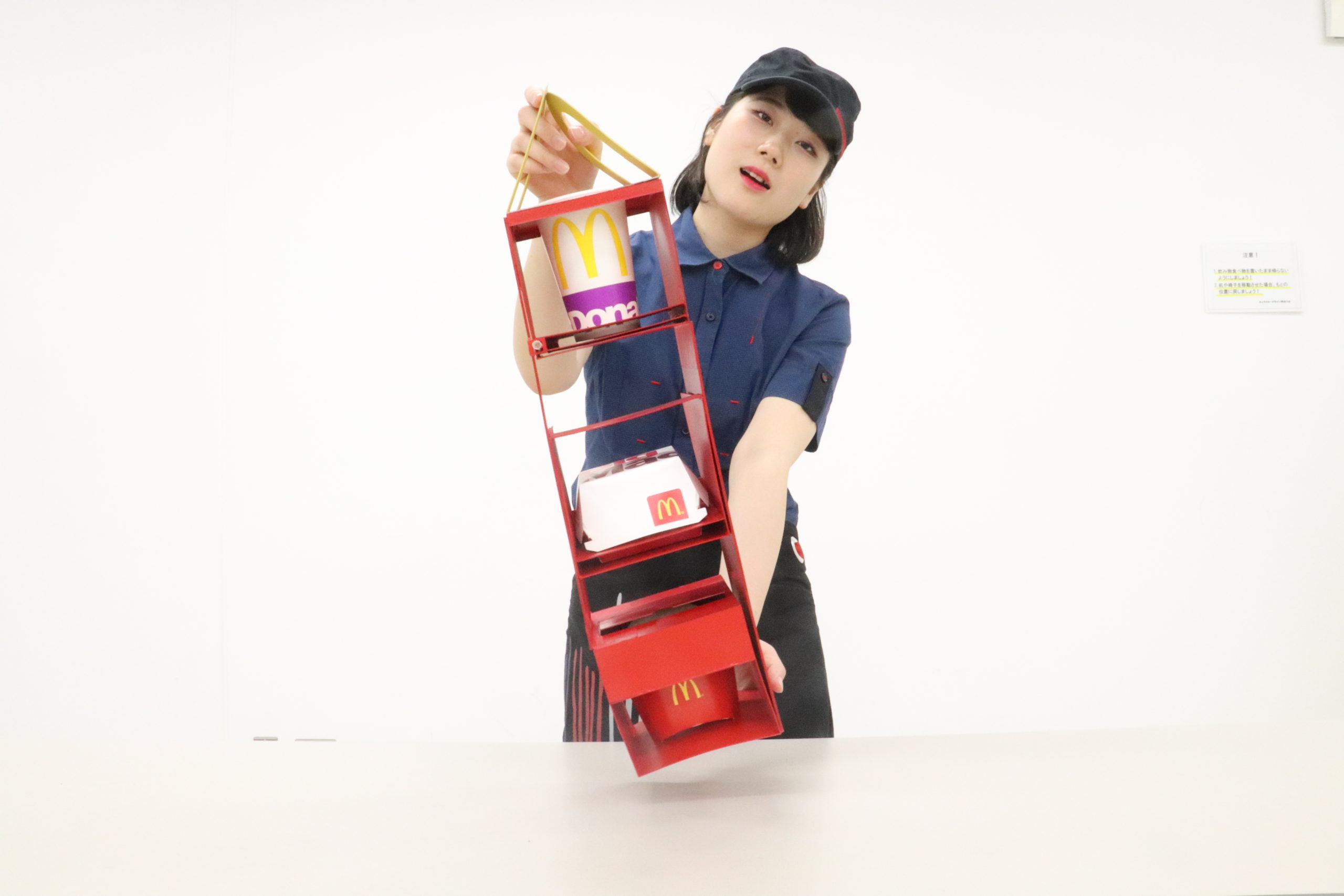 ドリンク、バーガー、ポテトのそれぞれのパッケージが見える形にし、紙袋がトレーになる機能を搭載すれば、外で食べる時に便利で特別感を演出できるのではないか?と考えました。