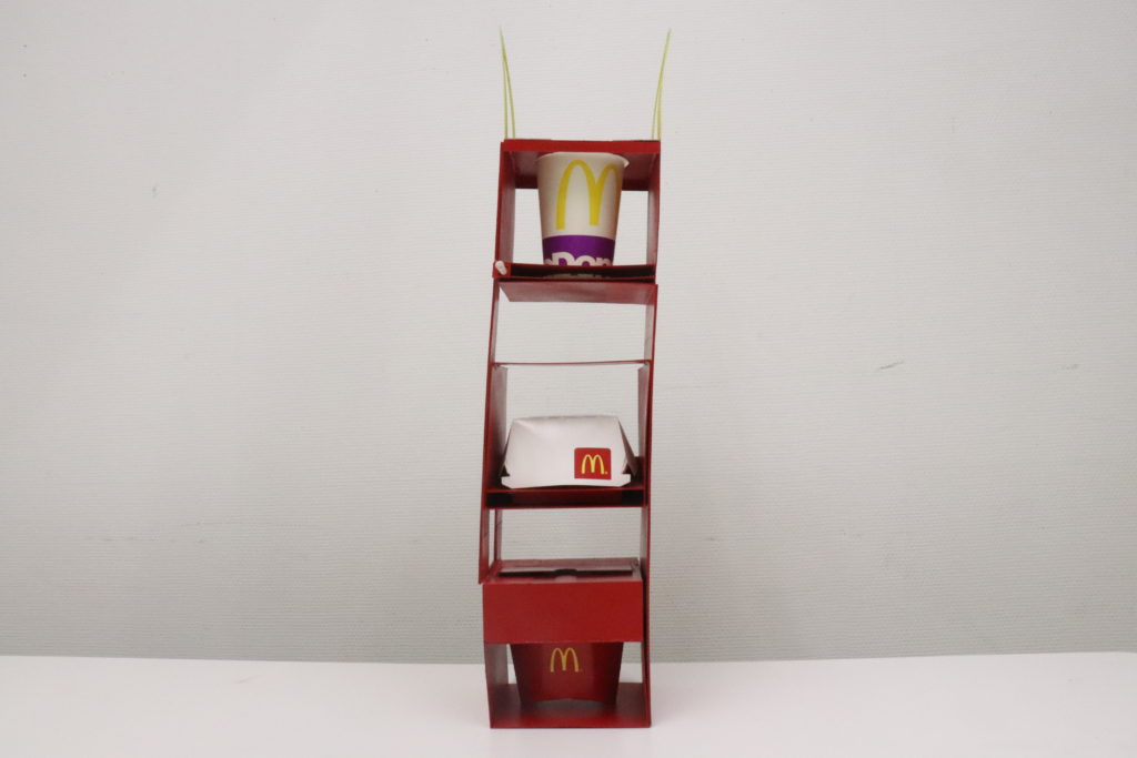 私は、マクドナルドを選びました。選択した理由は、販売物の形状がある程度決まっているのでその形状に合わせて製作すれば面白いアイデアが出るのではないかと考えたためマクドナルドにしました。