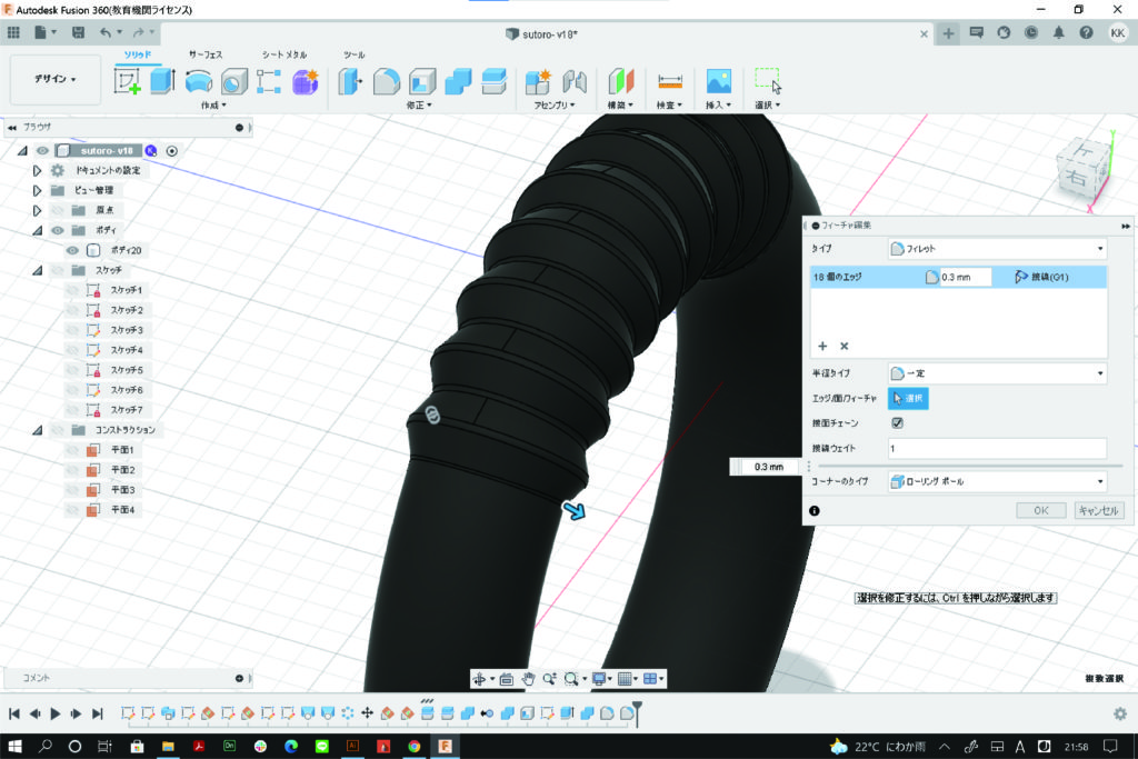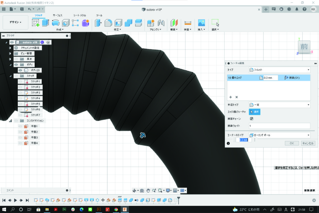 指に装着した際に痛みが伴わないように、凹凸部分にはしっかりとフィレットをかけています。