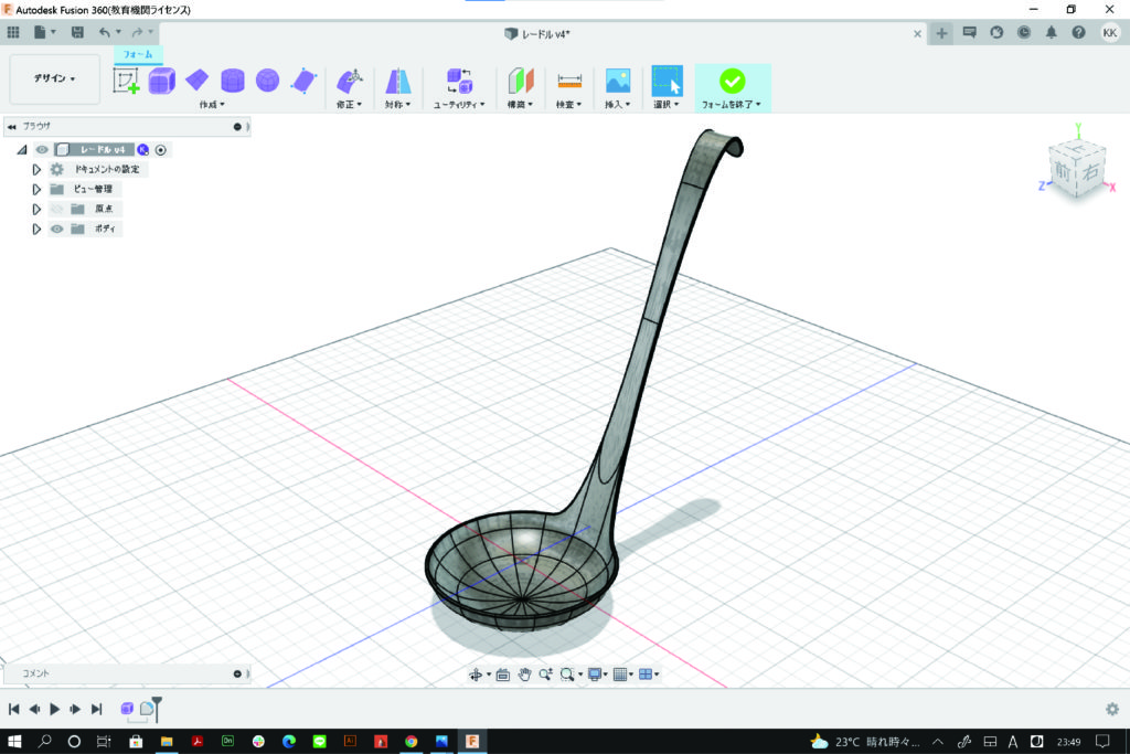 とりあえず、fusion360で普通のレードルの形状を製作してみました。
